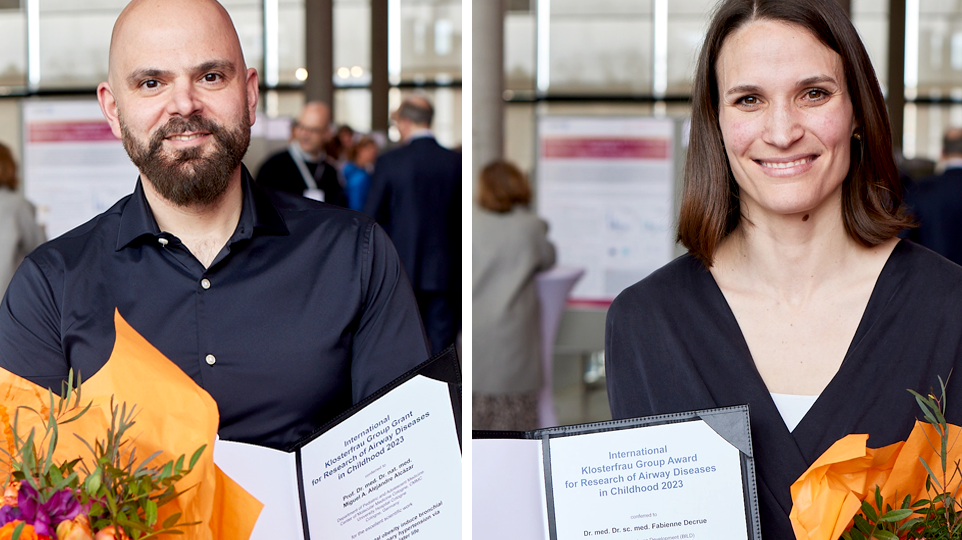 – Herausragender Forschernachwuchs im Bereich der Kinderlungenheilkunde geehrtDie Klosterfrau Healthcare Group zeichnete am 17. März 2023 in Frankfurt am Main zwei Forschende für ihre innovativen und praxisrelevanten Arbeiten zur Lungenfunktion und -entwicklung bei Kindern aus. Dr. med. Dr. sc. med. Fabienne Decrue erhielt den „International Klosterfrau Group Award 2023“ für ihre Arbeit über Auswirkungen von geringer bis moderater Luftverschmutzung im zweiten Schwangerschaftstrimester auf die Lungenfunktion von Frühgeborenen – und damit auf das Risiko einer chronisch obstruktiven Lungenerkrankung (COPD) im Erwachsenenalter. Einen zusätzlich vergebenen Research Grant der Klosterfrau Group erhielt Prof. Dr. med. Dr. nat. med. Miguel A. Alejandre Alcázar von der Universitätskinderklinik Köln. In seiner Arbeit konnte er zeigen, dass Adipositas um die Geburt herum im Tiermodell die Lungenentwicklung beeinflusst und zu chronischen Lungenerkrankungen führt.