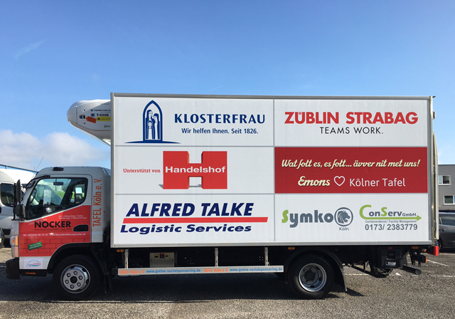 Klosterfrau ist dabei.Das bekannte Nonnen-Logo schmückt den neuen LKW der Kölner Tafel e.V.
