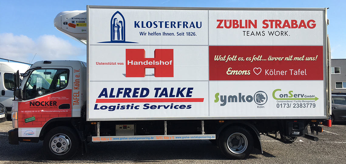 Mit dem modernen Tiefkühl-LKW ist es der Kölner Tafel nun möglich, schnell frische Ware, wie Obst und Gemüse, in nur einer Fahrt zu transportieren, um sie dann rasch an die wartenden Menschen auszuhändigen. Was bisher mit mindestens drei oder vier Fahrten zur Tafel transportiert werden konnte, schafft der „Tiefkühl-Brummi“ mit nur einer Fahrt. Und so wird nebenbei auch die Umwelt geschont.